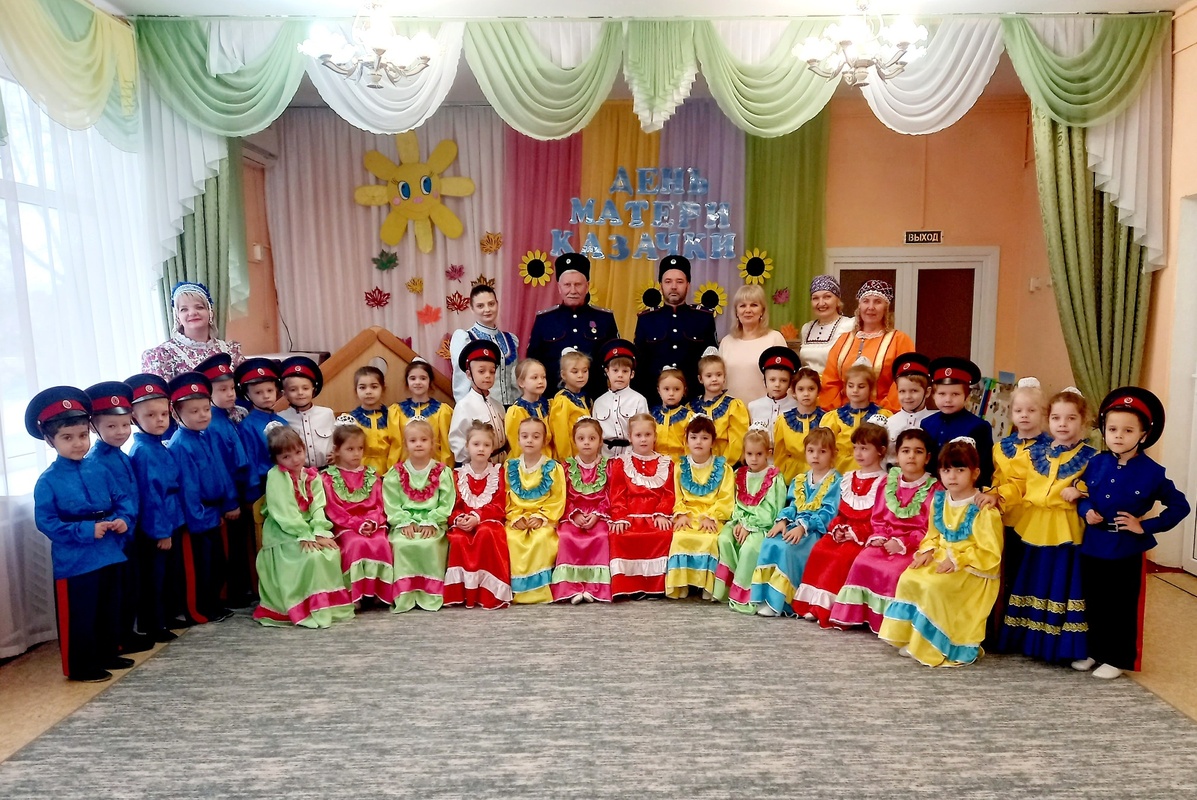 В рамках реализации плана-графика мероприятий III этапа «Казак из пригоршни напьется, из ладони пообедает» Всероссийского фестиваля-конкурса ВсКО «Во славу Отечества!» в детском саду прошел праздник «День Матери – казачки», посвященный уважению и почитанию матерей, которые воспитывают детей в духе казачьих традиций. Этот день отмечает важную роль женщин в казачьей культуре, их труд, заботу и любовь, которые они передают своим детям.