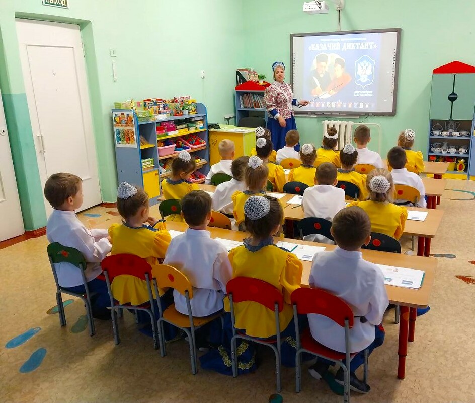 В рамках реализации плана-графика мероприятий III этапа «Казак из пригоршни напьется, из ладони пообедает» Всероссийского фестиваля-конкурса ВсКО «Во славу Отечества!» педагоги детского сада и казачата подготовительной группы приняли участие во Всероссийской патриотической общественно-просветительской акции «Казачий диктант-2025». Это мероприятие направлено на воспитание у детей чувства патриотизма и уважения к истории казачества.